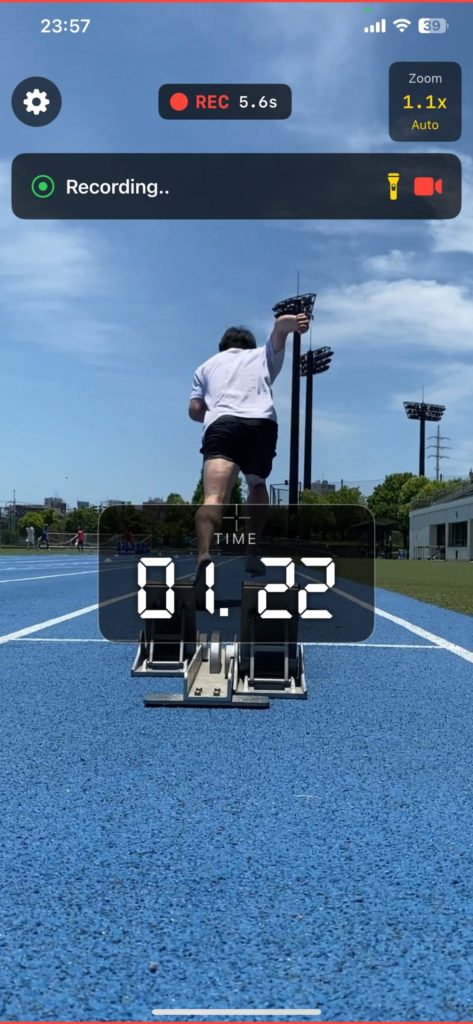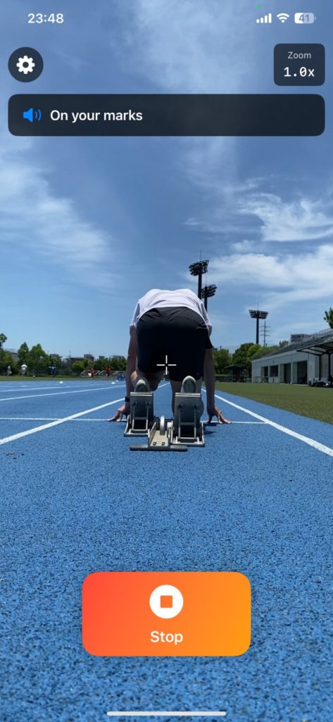 短距離スタートの「On your marks」→「Set」→「Bang!」のシーケンスを大音量で再生し、Auto Zooming機能とともに映像の録画を作成することができます。